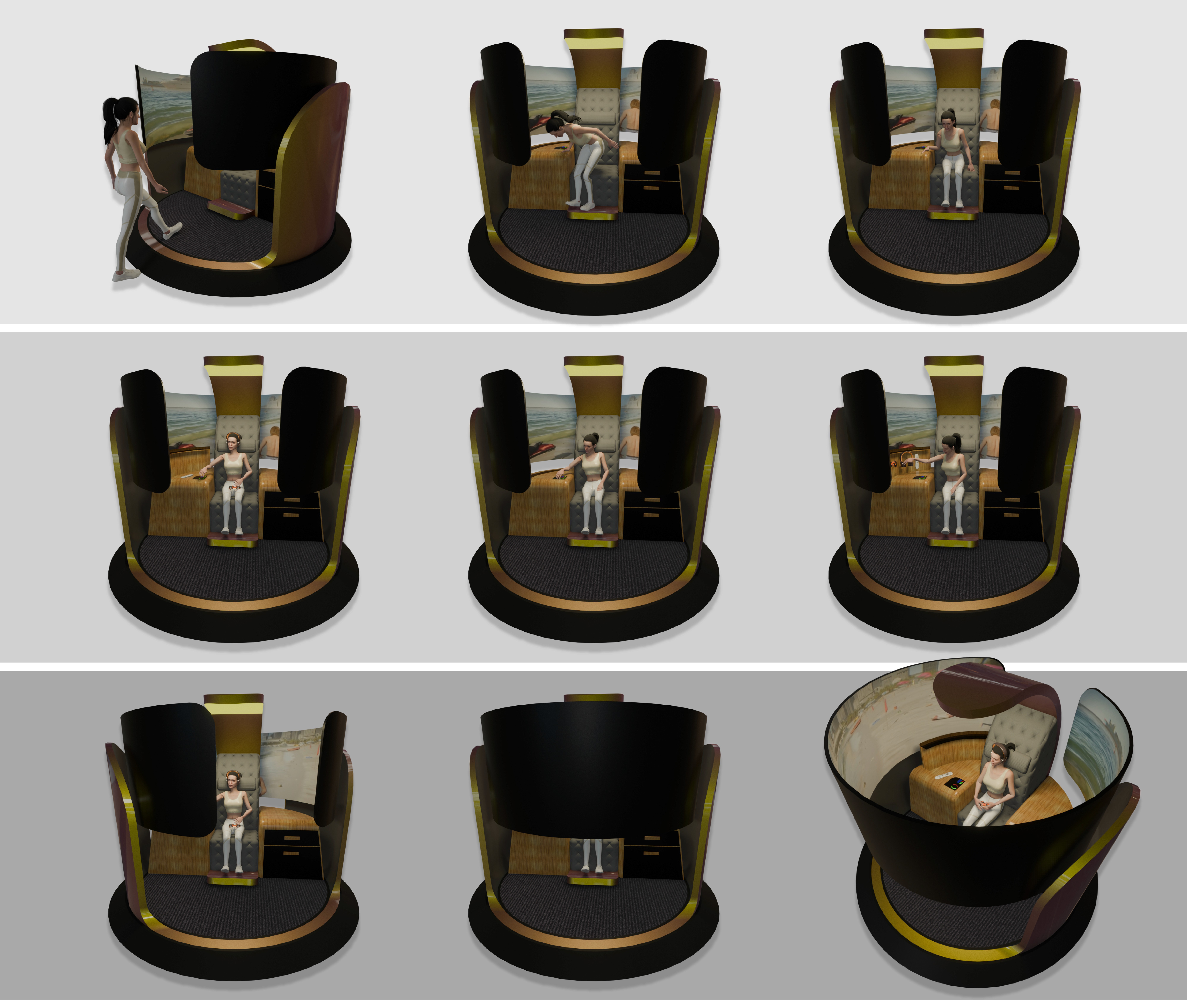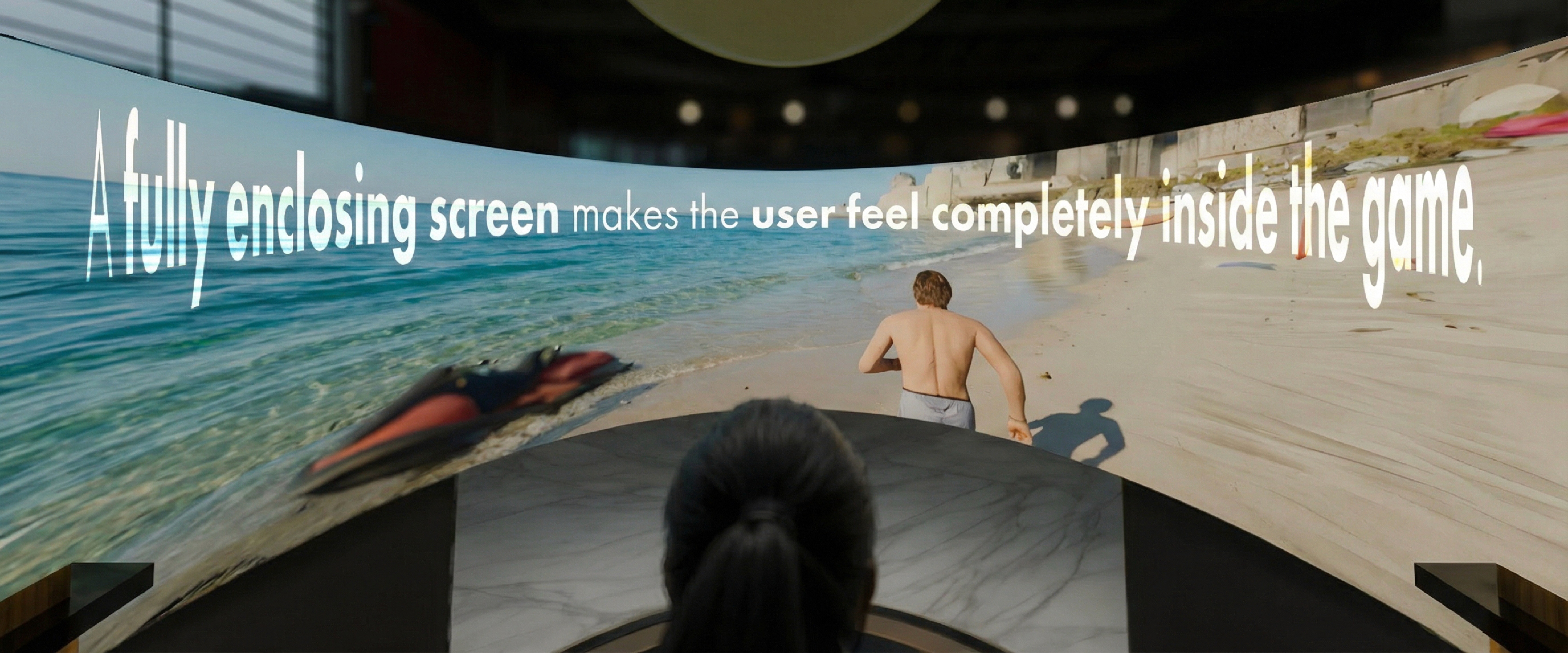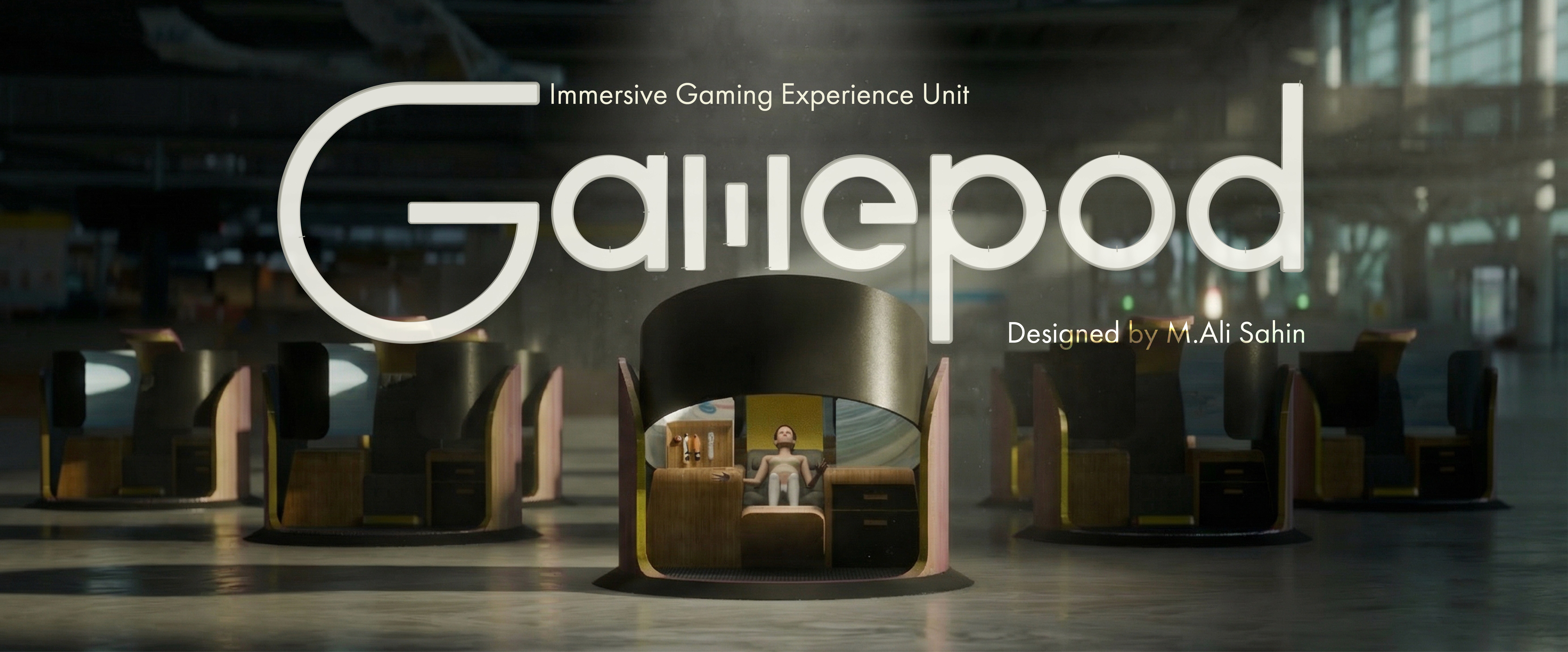 GamePod is a capsule-shaped personal gaming unit designed for immersive and private digital experiences. It features a wraparound screen, adjustable settings, and contactless activation, ideal for public indoor spaces.