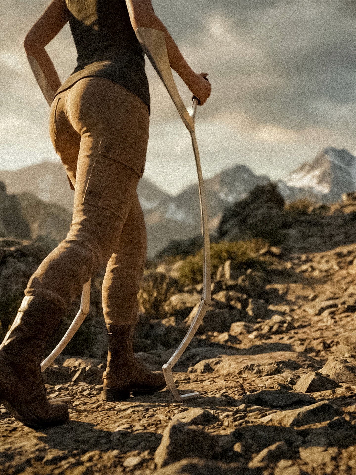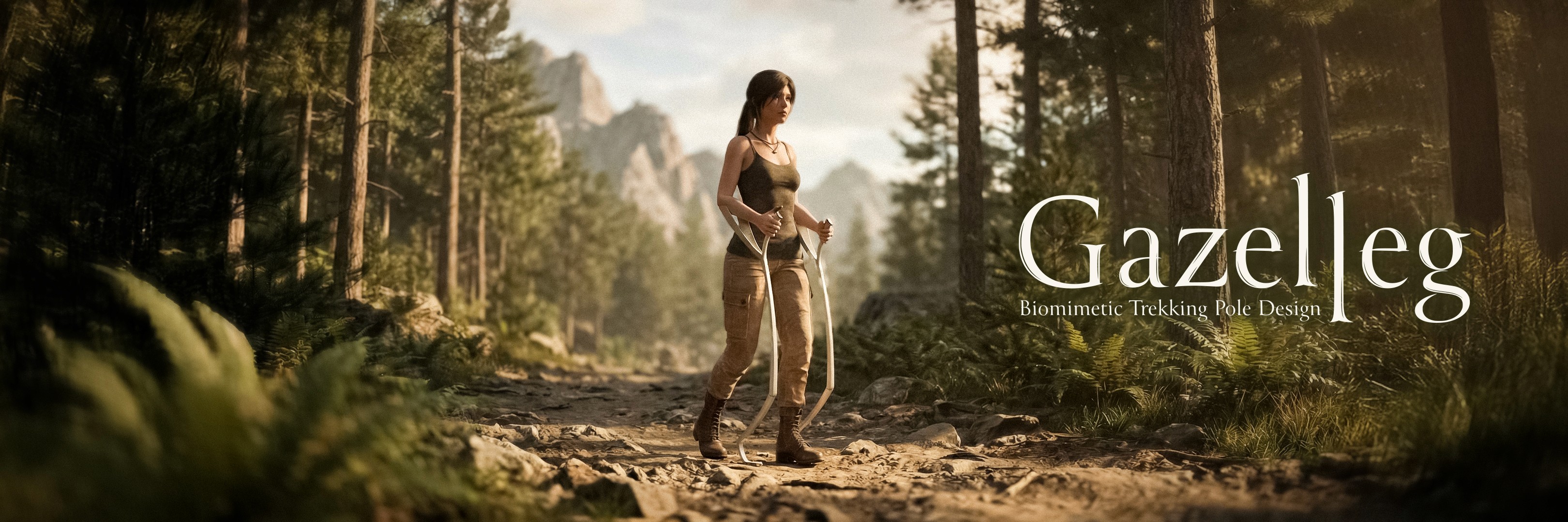 Inspired by nature’s adaptive forms, this lightweight and durable trekking pole enhances stability and comfort on uneven terrain. Designed for hikers and outdoor enthusiasts, it features an ergonomic grip, shock-absorbing structure, and modular tip system for various surface conditions. The form draws from animal limb mechanics to support natural movement and reduce user fatigue.
