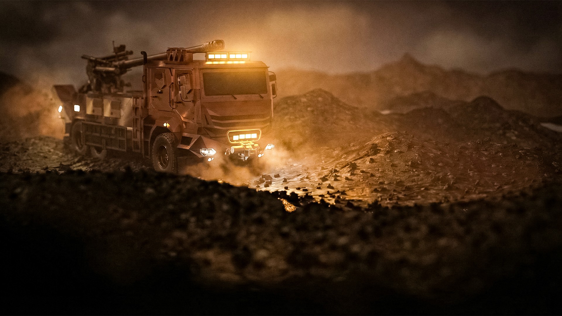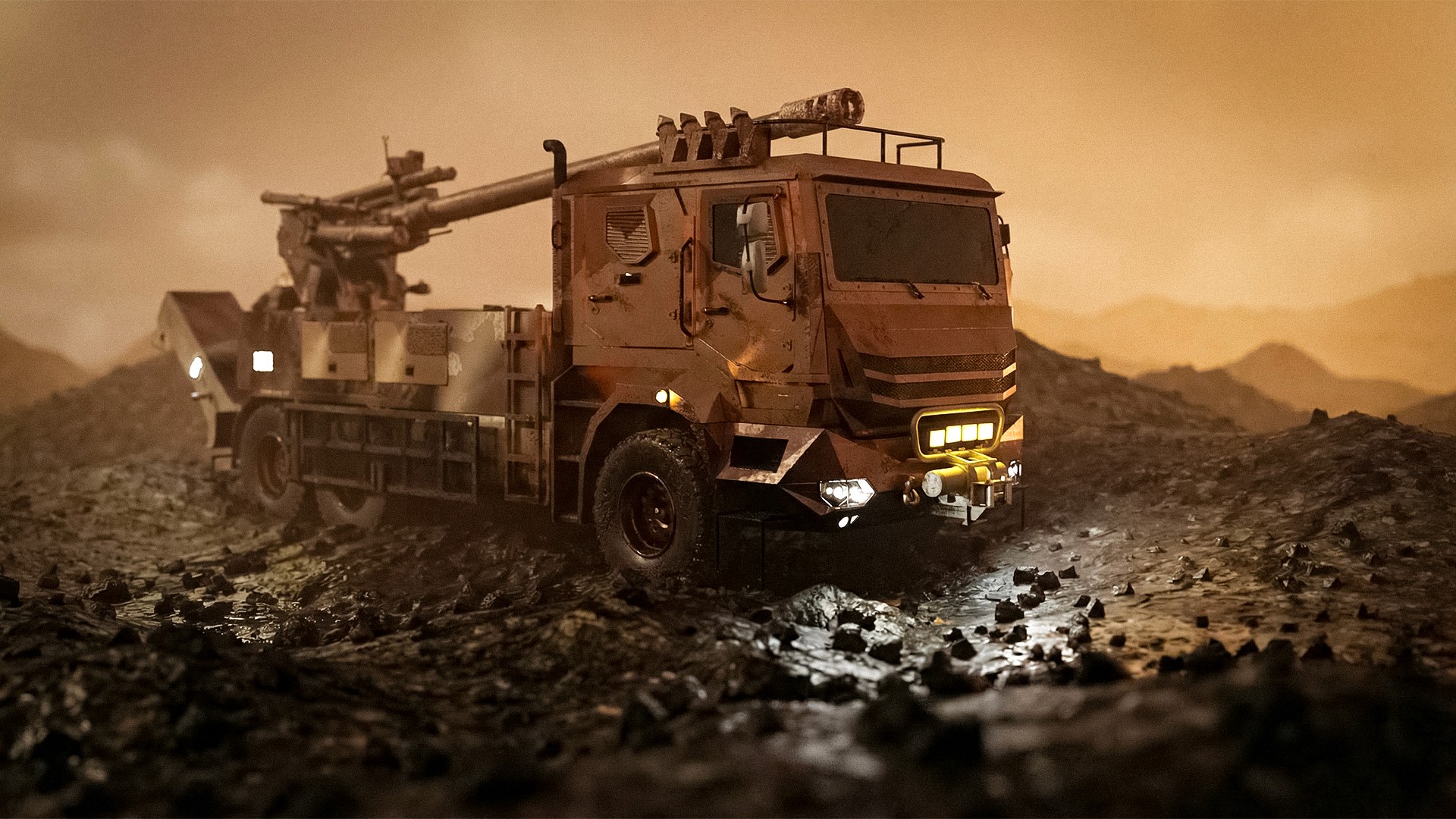 A personal 3D modeling and visualization project based on publicly available visual references of the Yavuz 155mm truck-mounted howitzer system. Truck modeling, integration of the howitzer system, scene layout, material setup, rendering (Blender Cycles), and post-processing (Photoshop) were all handled by me. This work was created for non-commercial purposes only.